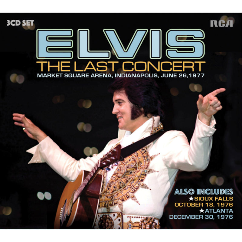 As part of its ongoing live on tour series, FTD is pleased to announce the historical release of “ELVIS: THE LAST CONCERT”. Released as a 3-CD 5” digipak, this set features the first official release of his final live performance at the Market Square Arena, Indianapolis, June 26,1977. With priority given to historical content, this amateur recording has been digitally enhanced to improve its many sonic deficiencies. Two additional concerts augment this 3-CD set; Arena Sioux Falls, October 18, 1976 and Omni Coliseum, Atlanta, December 30, 1976. (Previously released as part of the very limited book “On The Road With Elvis.”
