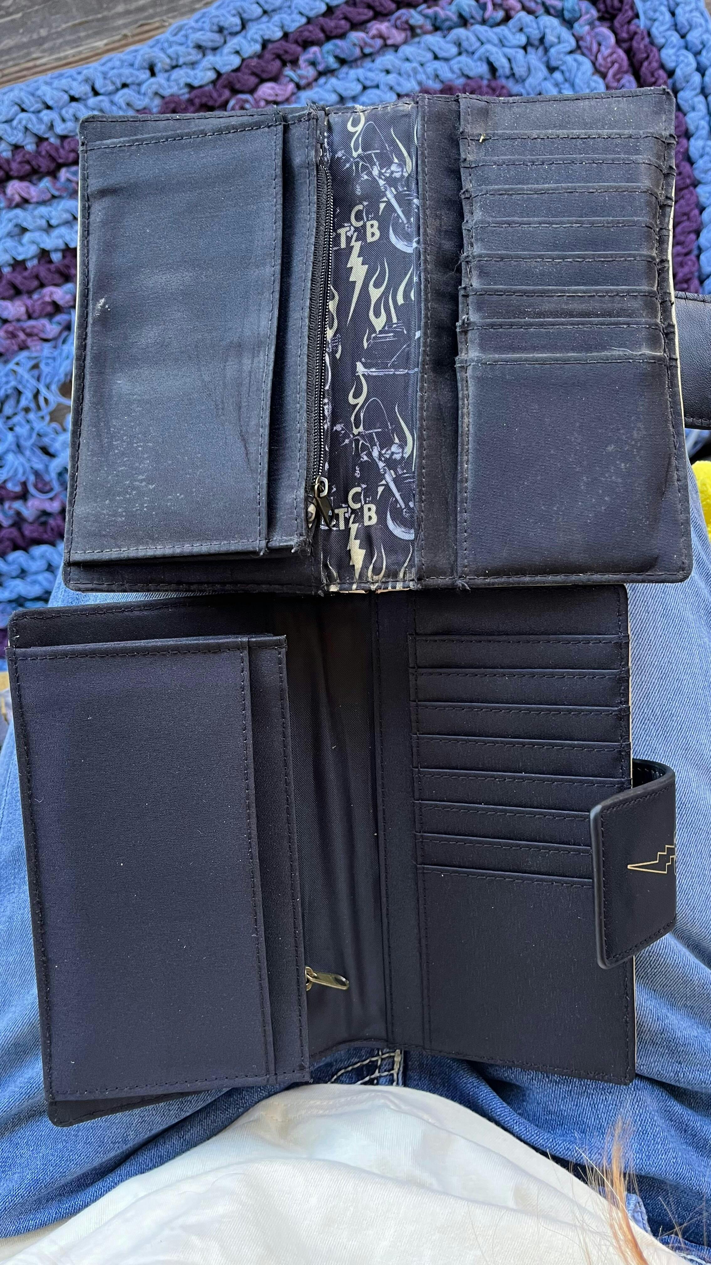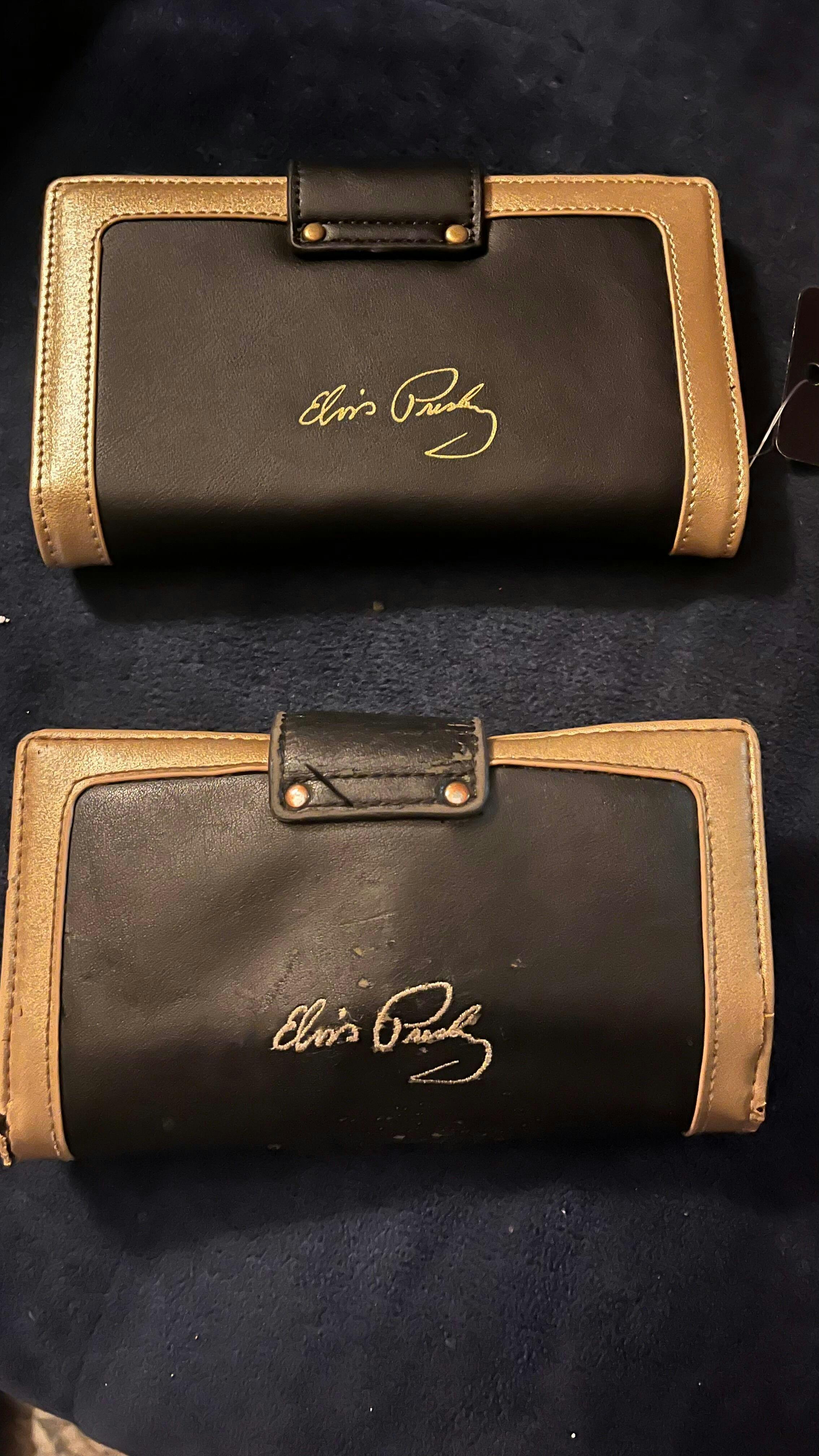 The Graceland Exclusive Elvis Motorcycle TCB Wallet is the perfect way to stay organized on-the-go! This fab clutch wallet features the TCB logo screen printed in gold on the closure flap, a matching Elvis signature on the back of the black shell accented by high contrast metallic gold trim. Rock this wallet today! Order now!