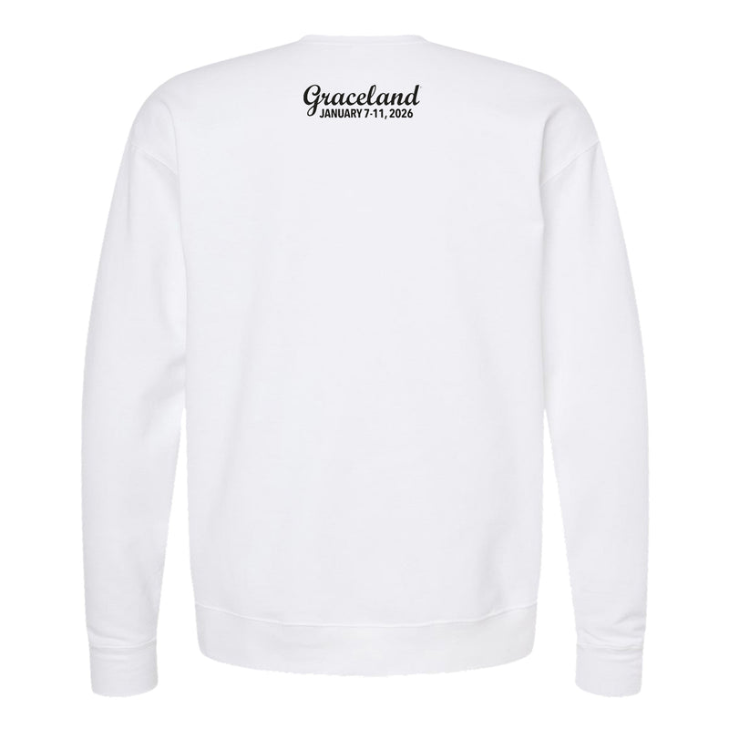 Celebrate the King's legacy with this striking 2026 Elvis Birthday Sweatshirt featuring a vinyl record design with a photo of Elvis Presley in the records center. Bold "ELVIS" lettering tops the design, followed by "2026 Birthday Celebration" and the Graceland logo. Gold-tone musical notes frame the record's edges, with "Graceland Memphis TN" completing this must-have tribute. "Graceland" and "January 7-11, 2026" is proudly printed on the back of the sweatshirt collar. Perfect for fans who want to wear their devotion proudly.