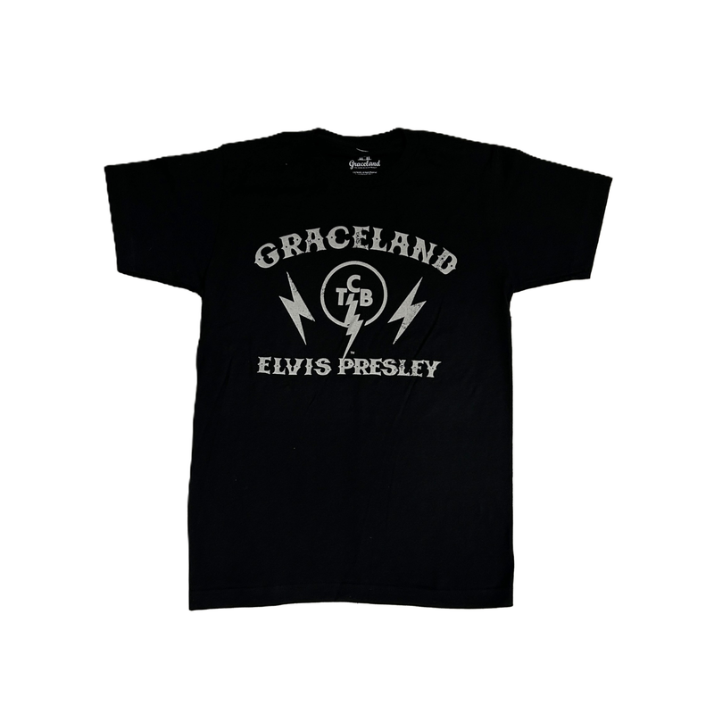 Celebrate the legacy of Elvis Presley with the Graceland Lightning Bolt TCB Tee. Featuring the iconic TCB logo in striking gray, highlighted by lightning bolts on either side of the logo and framed by the words "Graceland" and "Elvis Presley," this tee delivers timeless style and a bold tribute. Crafted for comfort, it’s perfect for fans wanting to wear a piece of music history every day.